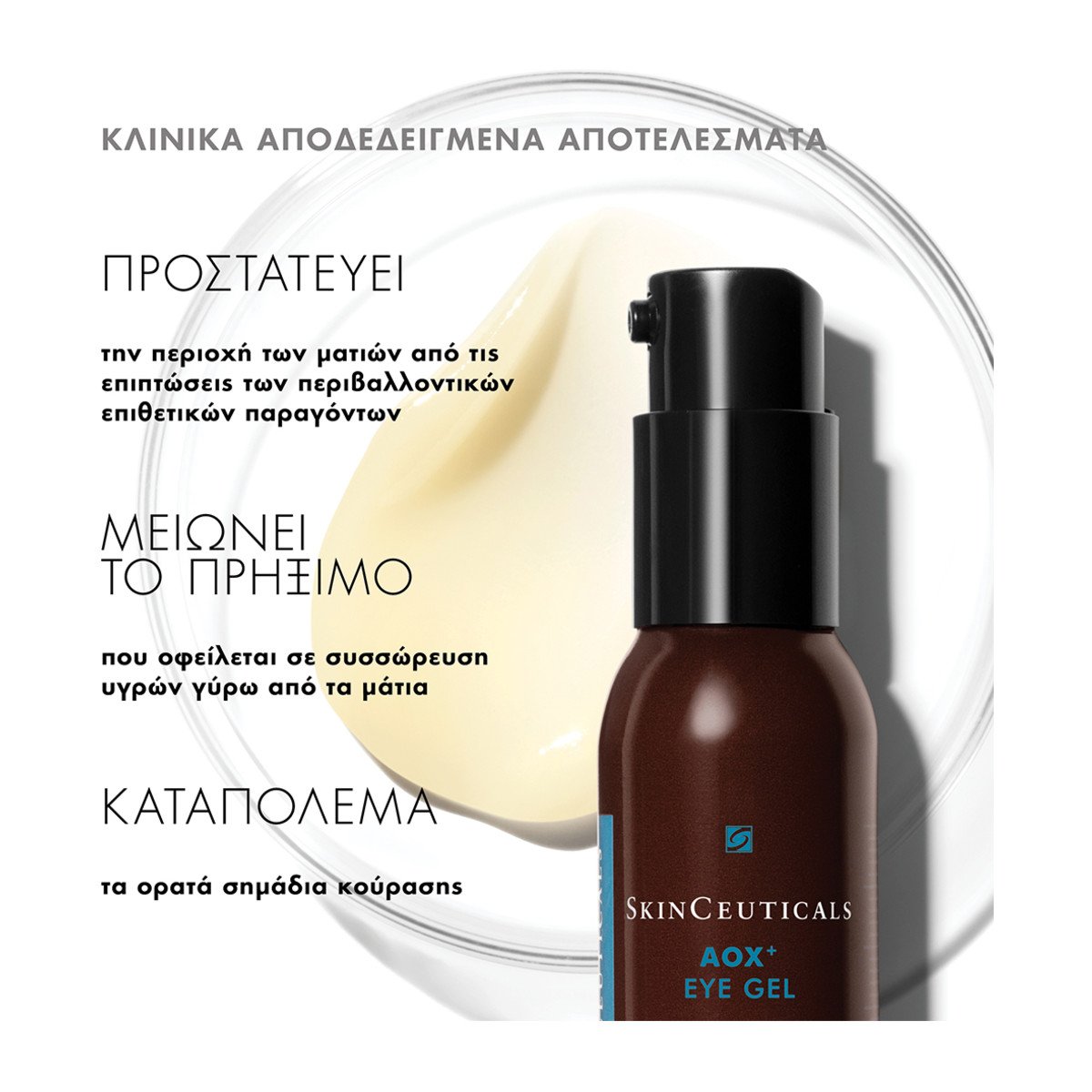 Το καινοτόμο AOX Eye Gel, serum σε μορφή gel συνδυάζει ισχυρά αντιοξειδωτικά που προστατεύουν την ευαίσθητη περιοχή των ματιών από το οξειδωτικό στρες. Τα ενεργά συστατικά στοχευμένης δράσης αναζωογονούν την επιδερμίδα κάτω από τα μάτια, συμβάλλοντας στη μείωση του οιδήματος και των σακουλών.